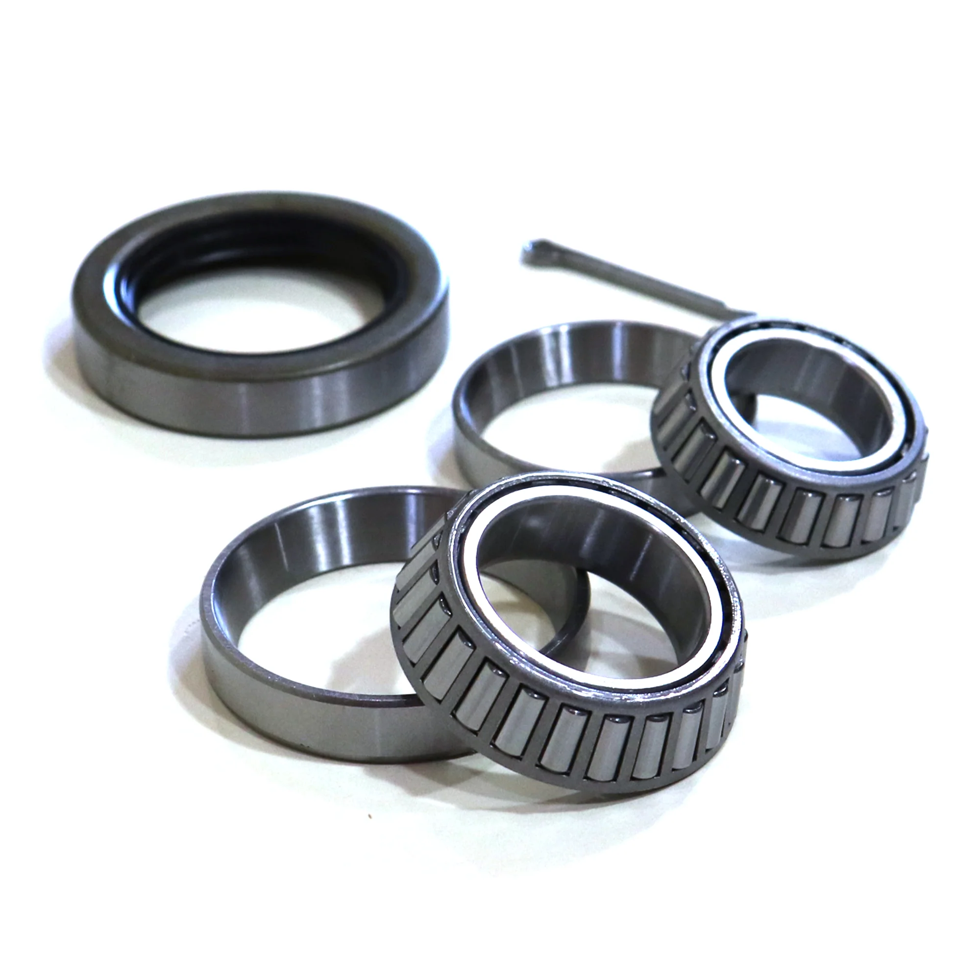 Kit comes complete with inner and outer bearings and races, seal and cotter pin. The inner and outer bearing and races are two separate sizes.